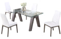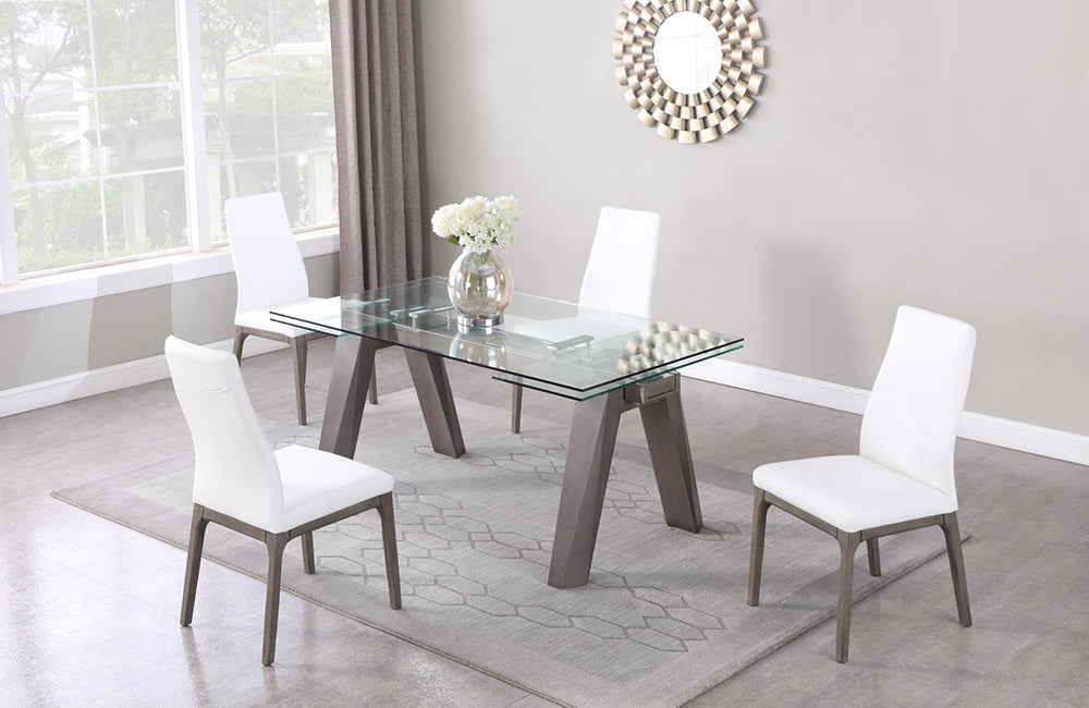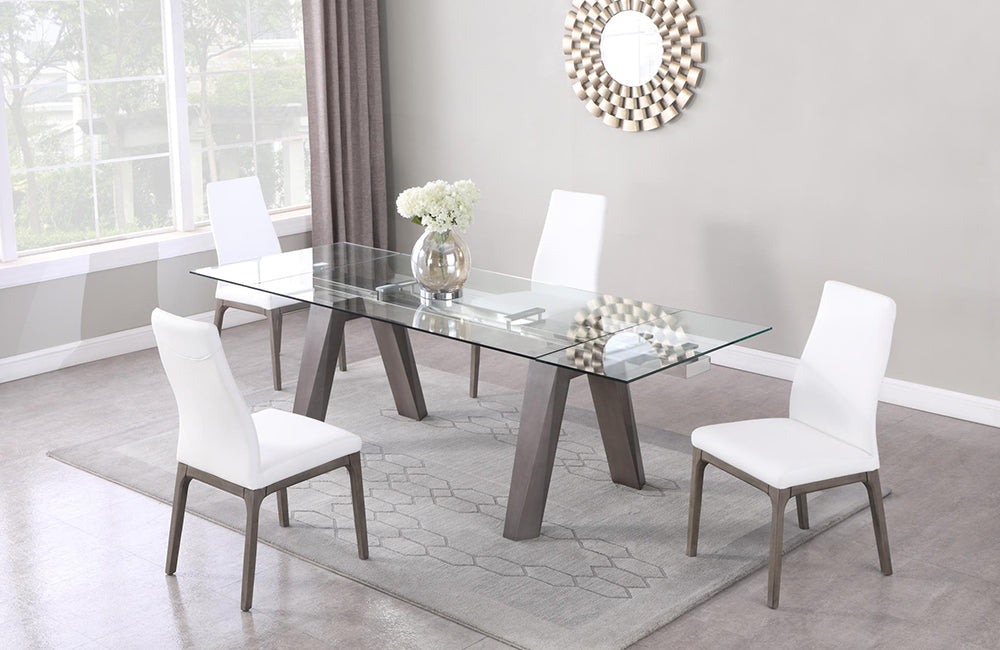 - Description: Modern Dining Set w/ Extendable Glass Table & 2-Tone Chairs