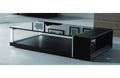 This occasional table has high quality and unforgettable, unique design. Black Oak veneer and Black Glass top with metal accents gives a stylish look to this item. Perfect for any contemporary or modern design. Gorgeous addition to your home.