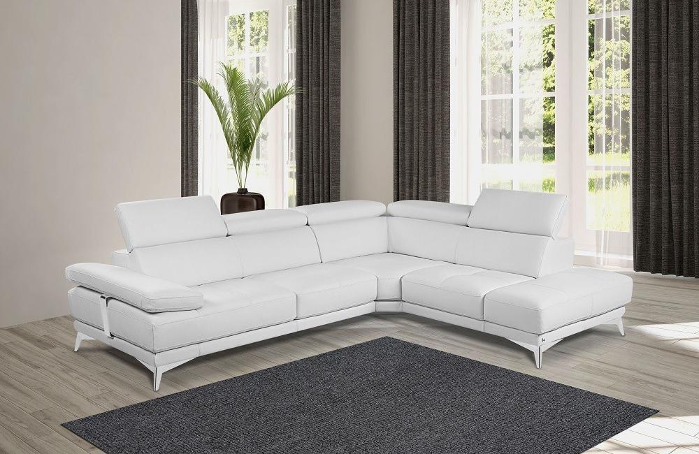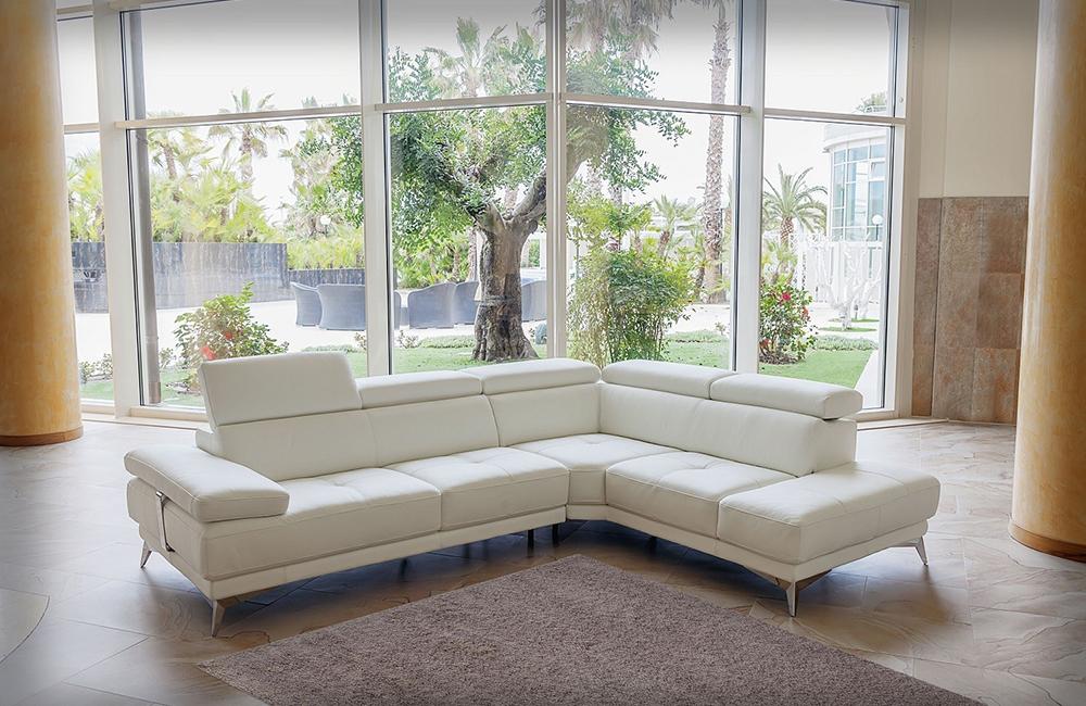 Casa-Eleganza is proud to announce the arrival of the Fear Premium Leather Sectional by Nicoletti. As the name suggests this is another winner by Nicoletti. Gorgeously upholstered in Bianco thick premium Italian Leather all around, this set has a total of 3 adjustable ratchet headrest.The legs and armrest is accented in chrome for a sleek and polished look all while maintaining comfort.