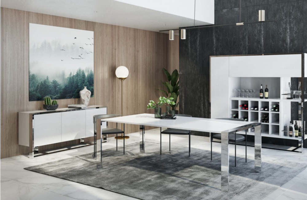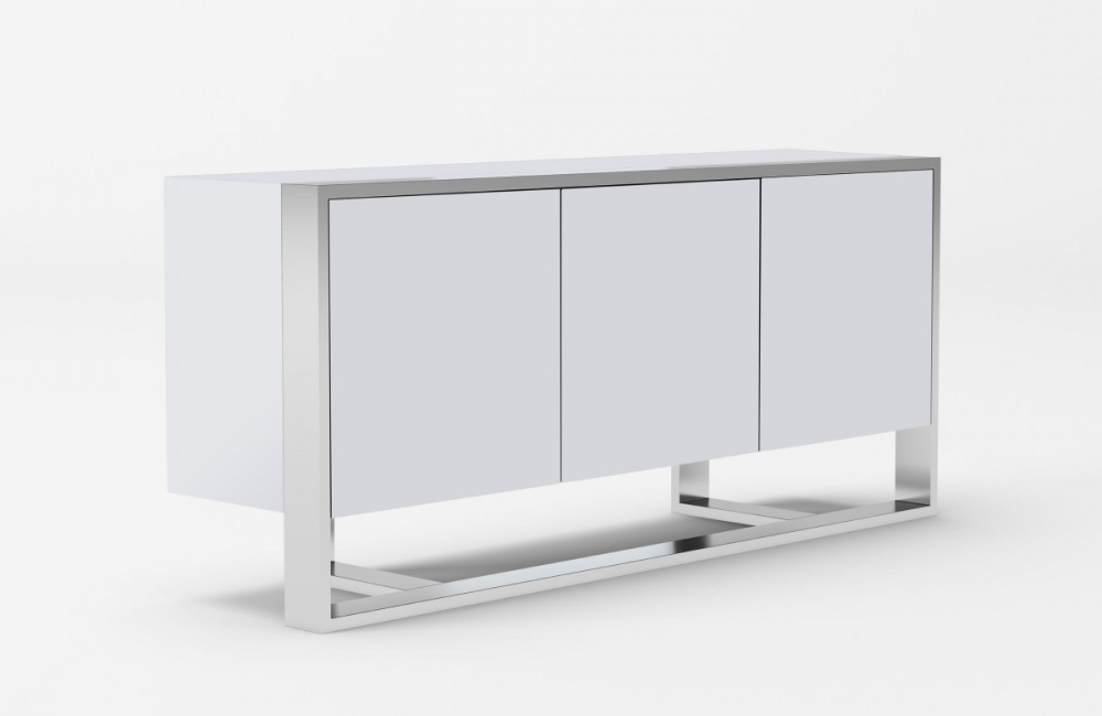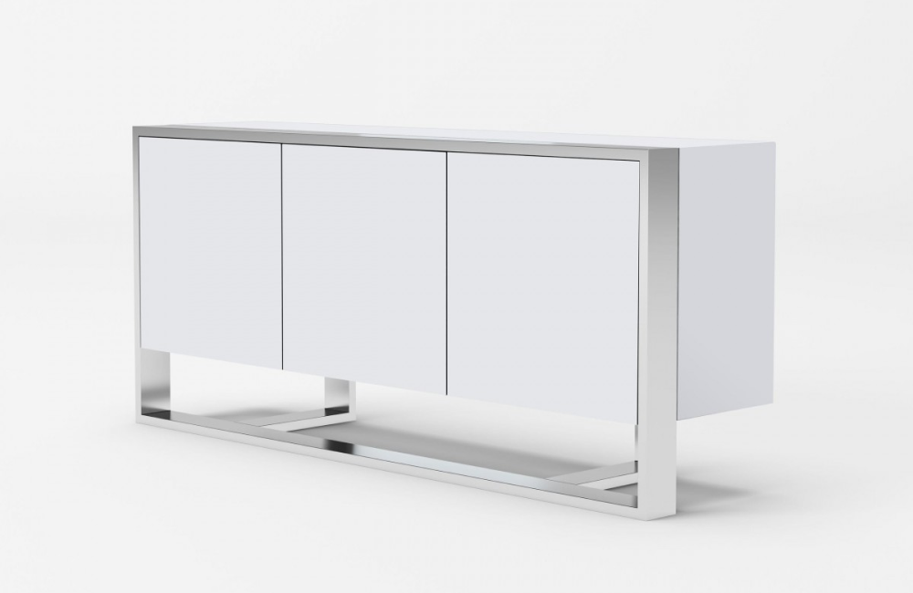 Flint - Modern White High Gloss & Stainless Steel Buffet