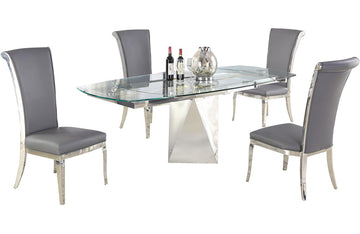 - Detail Description: Contemporary Motion-Extendable Glass Dining Set w/ 4 Chairs