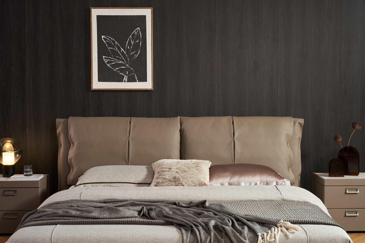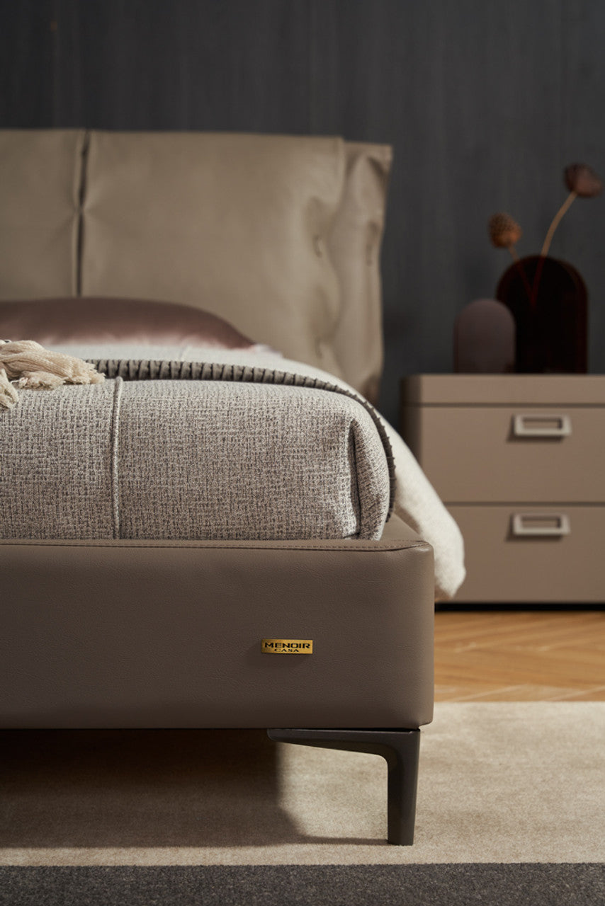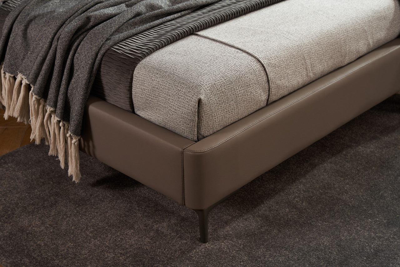 The Grace Dark Taupe Leather Bed in FSB014 showcases a perfect harmony of classic elegance and contemporary design. Featuring a smooth dark taupe leather upholstery, this queen bed serves as a refined focal point in any bedroom setting. Its minimalist silhouette, combined with a robust frame, guarantees both aesthetic appeal and long-lasting strength. Ideal for those who appreciate a mix of comfort and modern sophistication, this bed enhances your bedroom with subtle luxury and enduring craftsmanship.