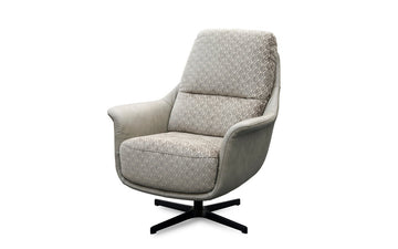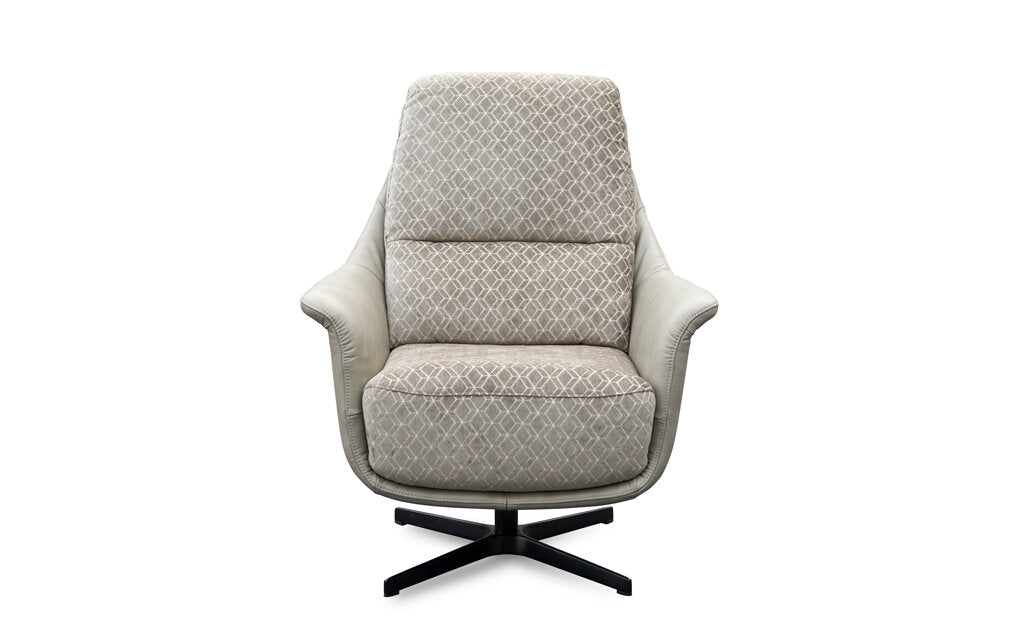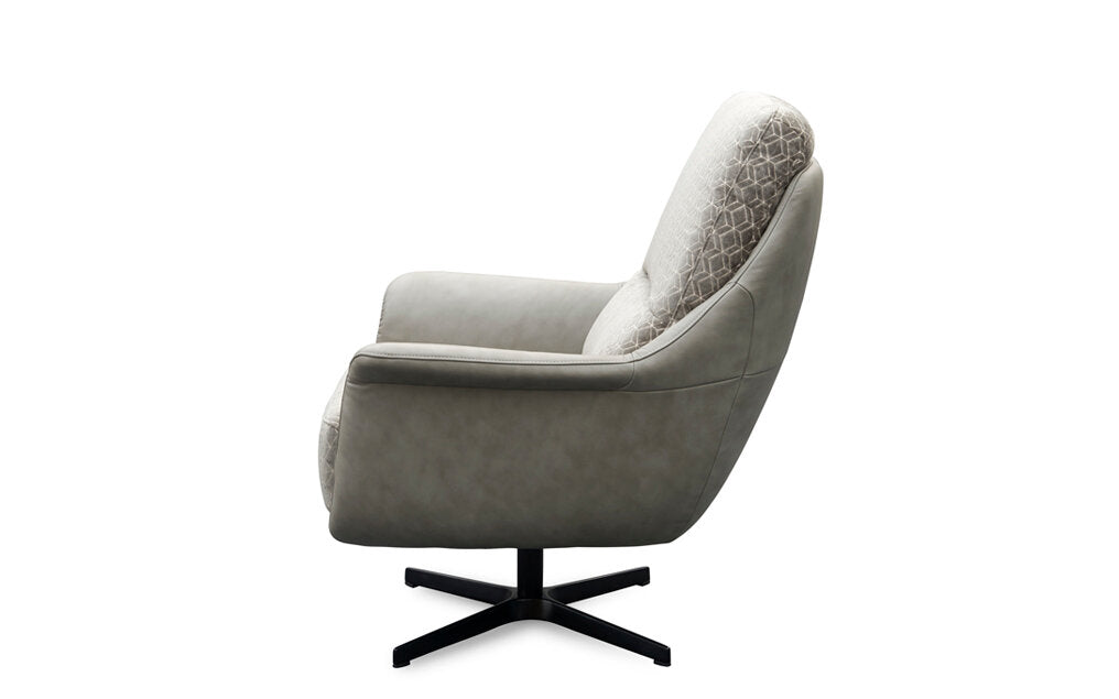 Hagen Grey Hexagon Designer Fabric and Leather Swivel Accent Chair