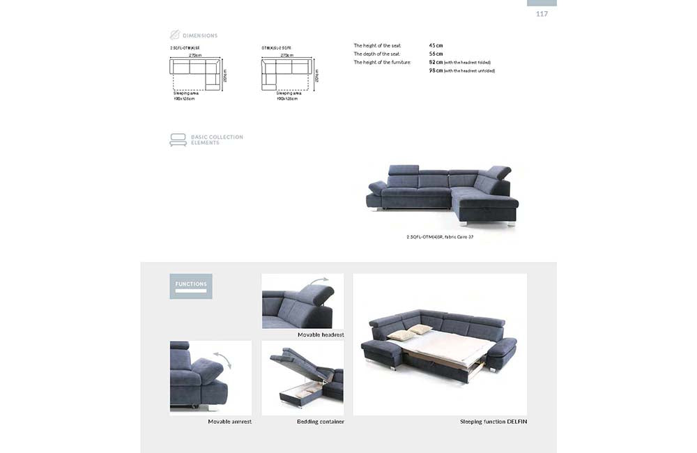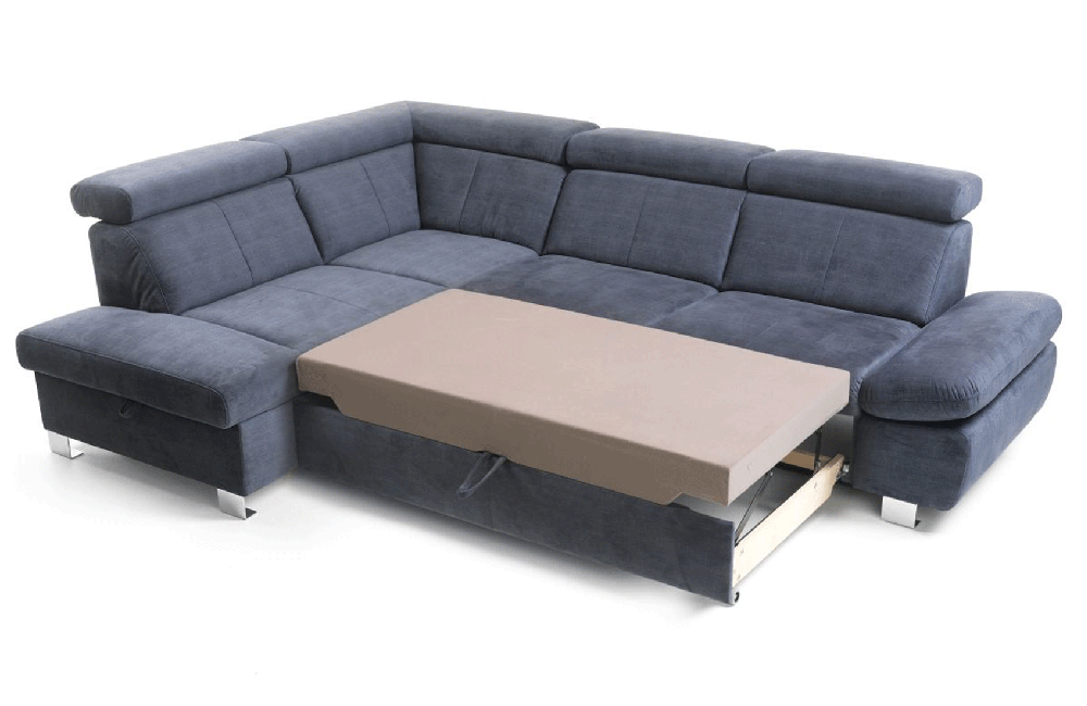 The Happy corner sofa is a piece of furniture you’ll loved for its beautiful and clean design as well as functionalities that will let you rest in comfort. Thanks to adjustable headrests you can freely adjust the backrest height, whereas armrests can be used as a headrest when reading a book or magazine in supine position. Interesting chrome-plated leg design accentuates this corner sofa’s modern design. You can rest comfortably no matter what you’re doing – sitting, laying down or even sleeping, as it can be easily folded out for sleeping.