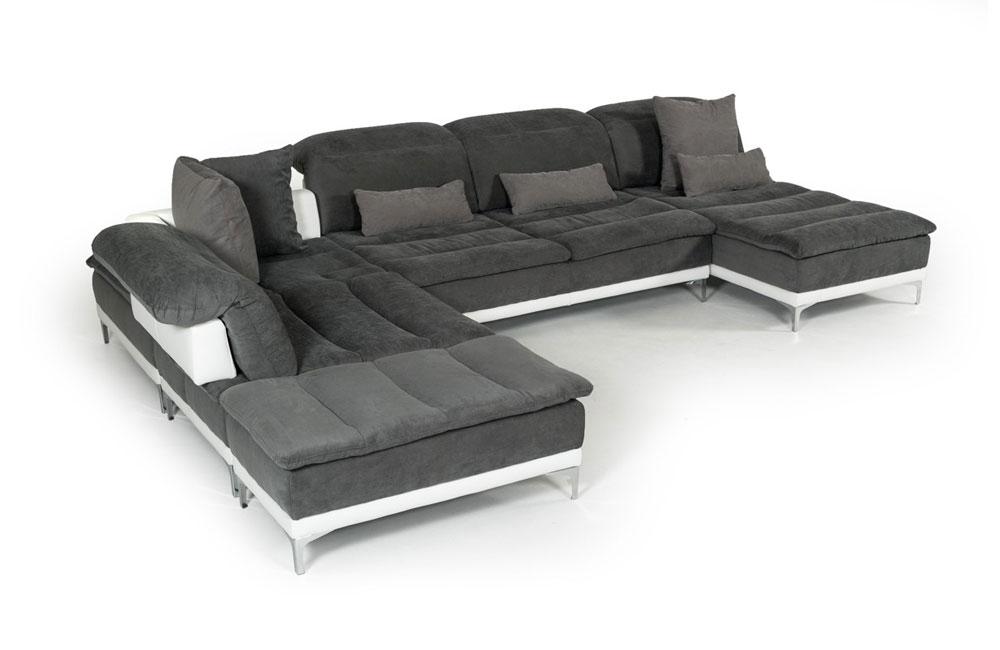 Horizon Modern Gray Fabric & Leather Sectional Sofa