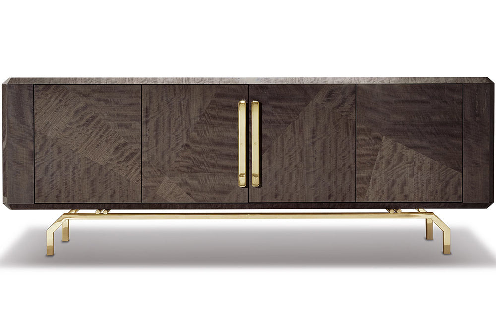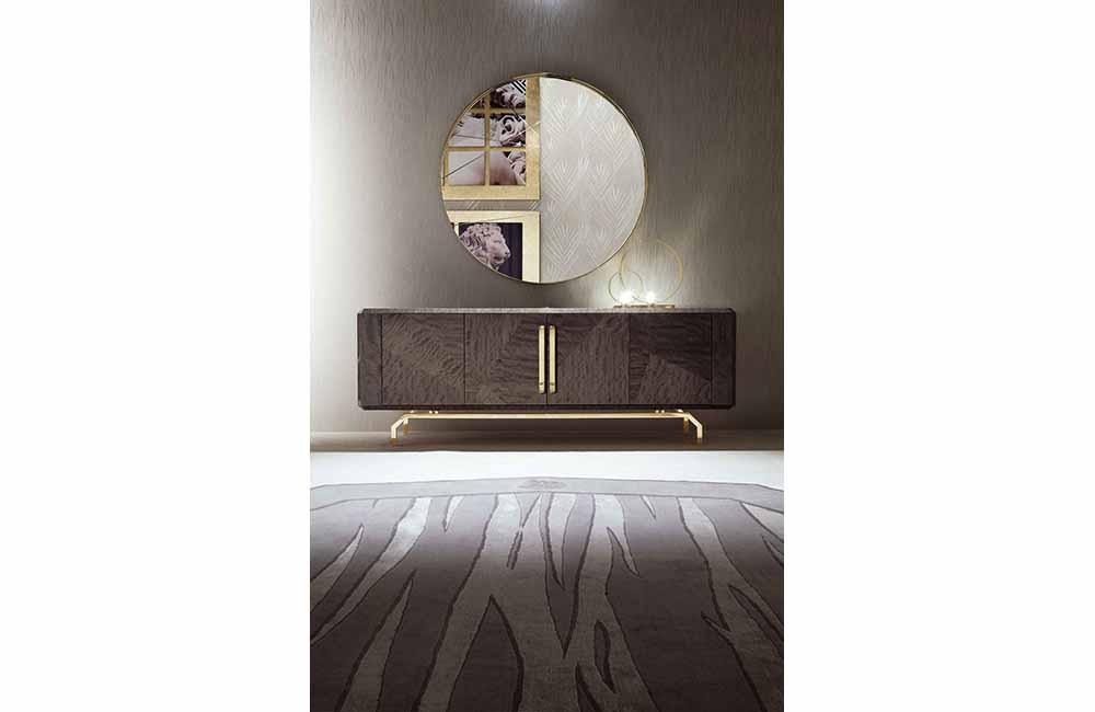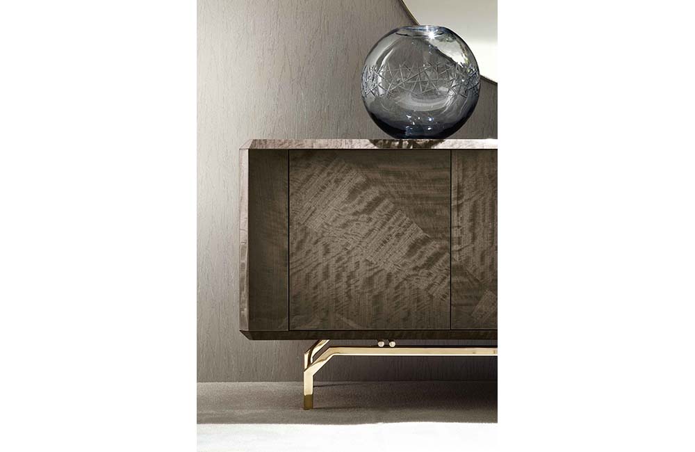 Buffet with 4 inlaid doors in makorè mahogany veneer with high gloss polyester finish.