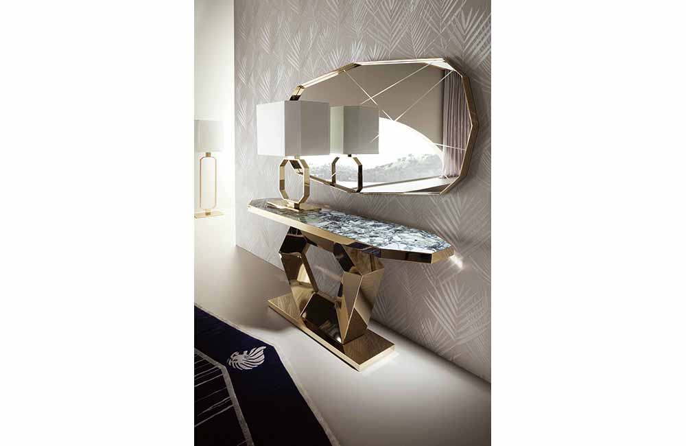 Console in light gold chrome stainless steel with Giorgio Collection logo