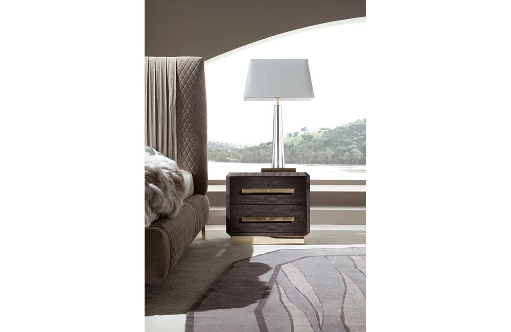 Night table in makorè mahogany veneer with high gloss polyester finish.