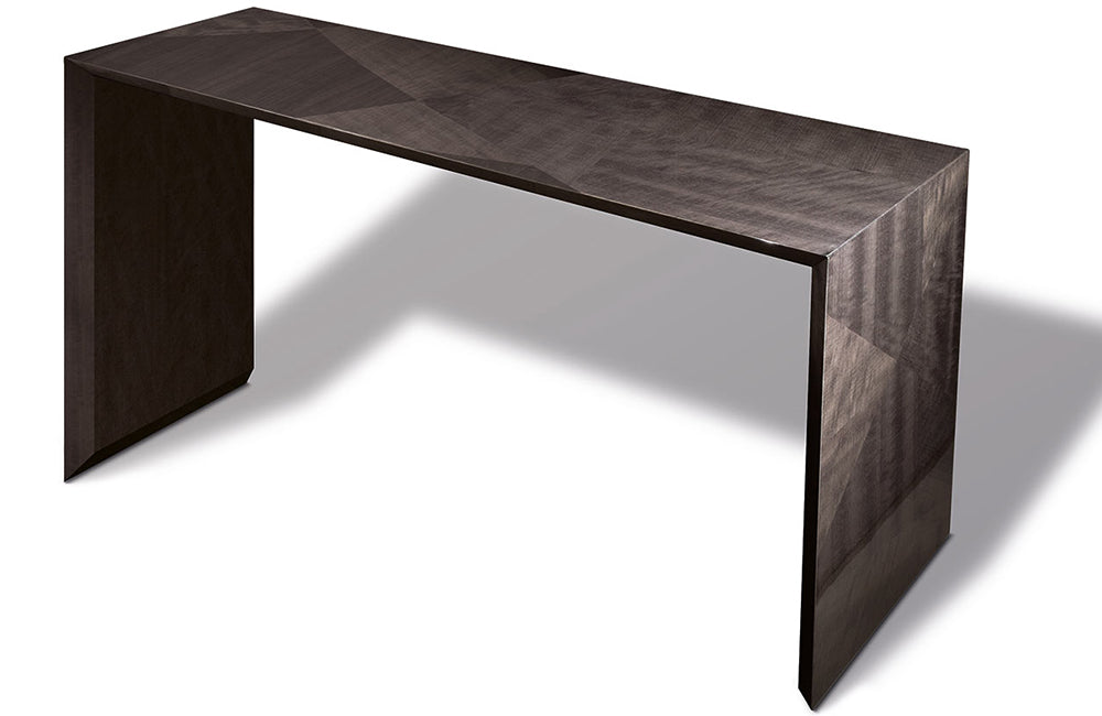 Sofa cocktail table in makorè mahogany veneer with high gloss polyester finish.