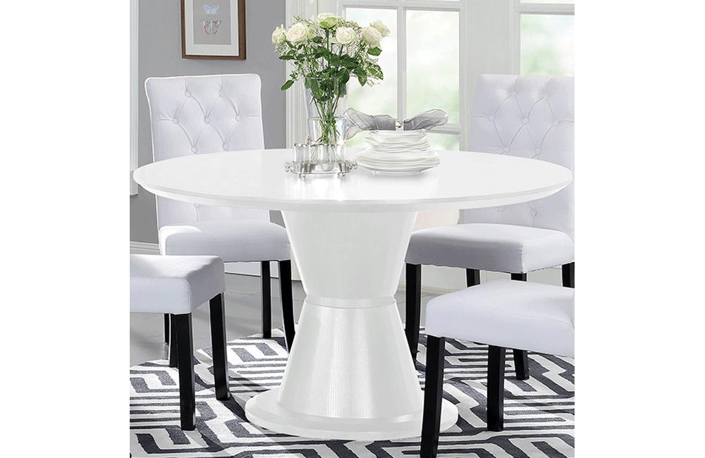 Modern and sleek, this round dining table will decorate any interior, providing enough space for a family of four. The tabletop is made in White high gloss finish that will make your whole dining room look sleek and modern.