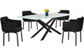 - Detail Description: Dining Set w/ Starphire Glass Top, Steel Base & 4 Swivel Arm Chairs