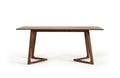 Made with CARB compliant and sustainable wood from the Para rubber tree, the Jett dining table is a great eco-friendly choice. The design reflects both scandinavian and Mid-Century Modern designs. Constructed with a strong MDF grade A wood top and solid rubberwood base, the table is finished in a natural walnut veneer. Approved for residential and commercial use.