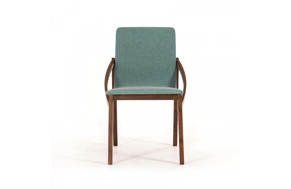 Made with sustainable wood from the Para rubber tree, the Jett Dining Chair is a beautiful and eco-friendly choice. Designed to reflect both Mid-Century Modern and scandinavian styles, the Jett Dining Chair features a thin walnut finished wooden frame that creates a slight armrest and a comfortable sloped seat and back. Upholstered in grey 100% polyester fabric, the Jett would fit in with almost any color scheme. Available in Gray and Blue.