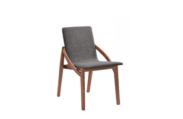 Made with sustainable wood from the Para rubber tree, the Jett Dining Chair is a beautiful and eco-friendly choice. Designed to reflect both Mid-Century Modern and scandinavian styles, the Jett Dining Chair features a thin walnut finished wooden frame that creates a slight armrest and a comfortable sloped seat and back. Upholstered in grey 100% polyester fabric, the Jett would fit in with almost any color scheme. Available in Gray and Blue.