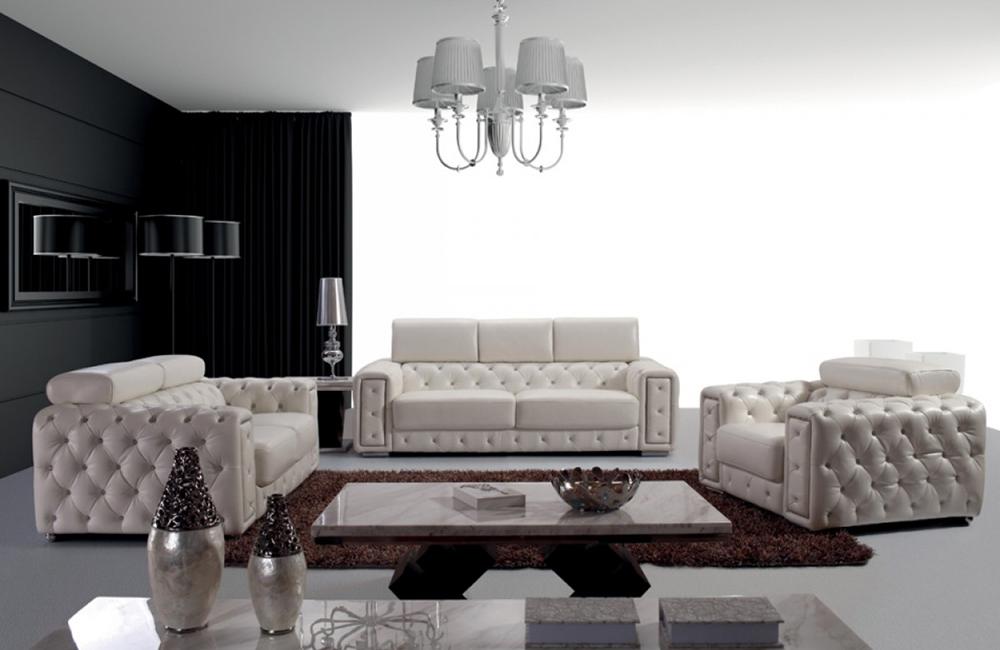 Tufted leather sofa set