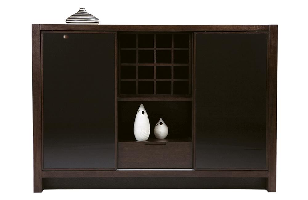 Jocasta Dining Buffet by Casa Eleganza - Oak veneer in Wenge finish. Sliding Door with Black Glass Buffet .