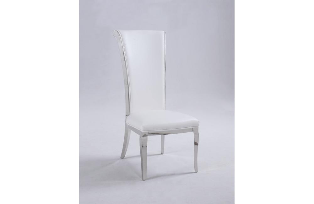 This tall back side chair cuts a stately and powerful figure. The high back suggests affluence, while the curved legs add an air of elegant refinement. It's also upholstered in high quality white polyurethane. Truly, a beautiful piece.