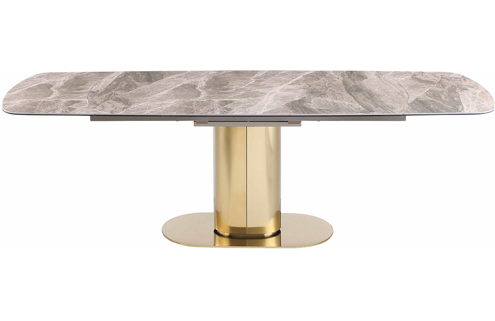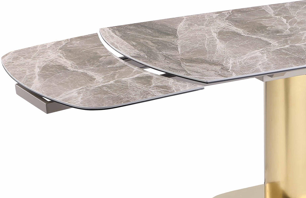 - Detail Description: Extendable Marbleized Sintered Stone Top Dining Table w/ Steel Base