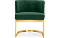 Lend your dining area a touch of retro charm with the Katie velvet dining chair from Meridian Furniture. The back of the chair has a barrel design that cradles you in comfort while you enjoy a meal with friends, and the chair is thickly padded and upholstered in plush navy velvet for a luxe feel. The base is made from stainless steel with a gold finish for a finish that's stunningly beautiful.