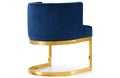 Lend your dining area a touch of retro charm with the Katie velvet dining chair from Meridian Furniture. The back of the chair has a barrel design that cradles you in comfort while you enjoy a meal with friends, and the chair is thickly padded and upholstered in plush navy velvet for a luxe feel. The base is made from stainless steel with a gold finish for a finish that's stunningly beautiful.