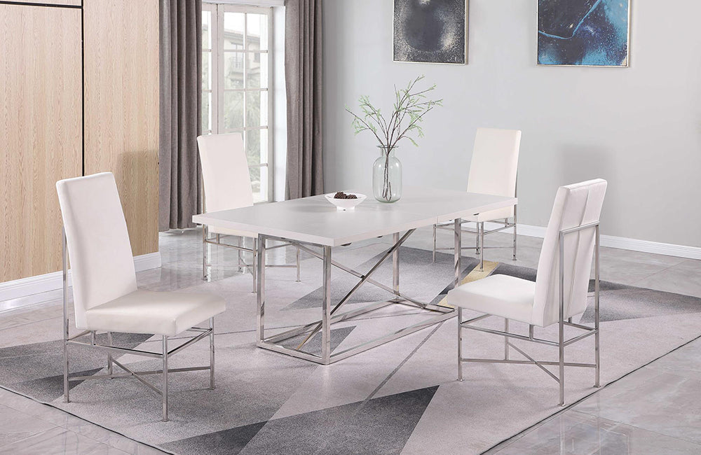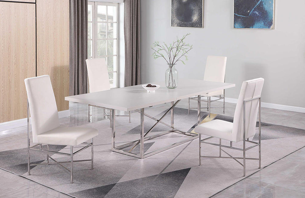 - Detail Description: Contemporary Dining Set with Butterfly Extendable Table & 4 Side Chairs