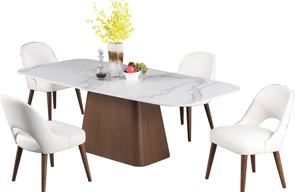 - Detail Description: Modern Marbleized Sintered Stone Top Table & Wooden Legged Chairs