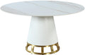 Sintered Stone Top Dining Table w/ Wooden Base & Golden Accent.