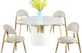 - Detail Description: Dining Set w/ Marbleized Sintered Stone Top Table & Golden Frame Chairs