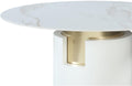 - Detail Description: Marbleized Sintered Stone Top Table w/ Cylinder Base & Golden Accent