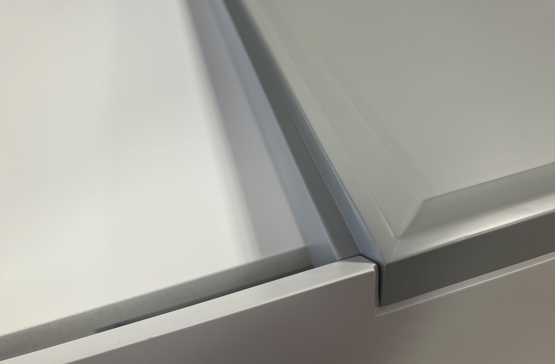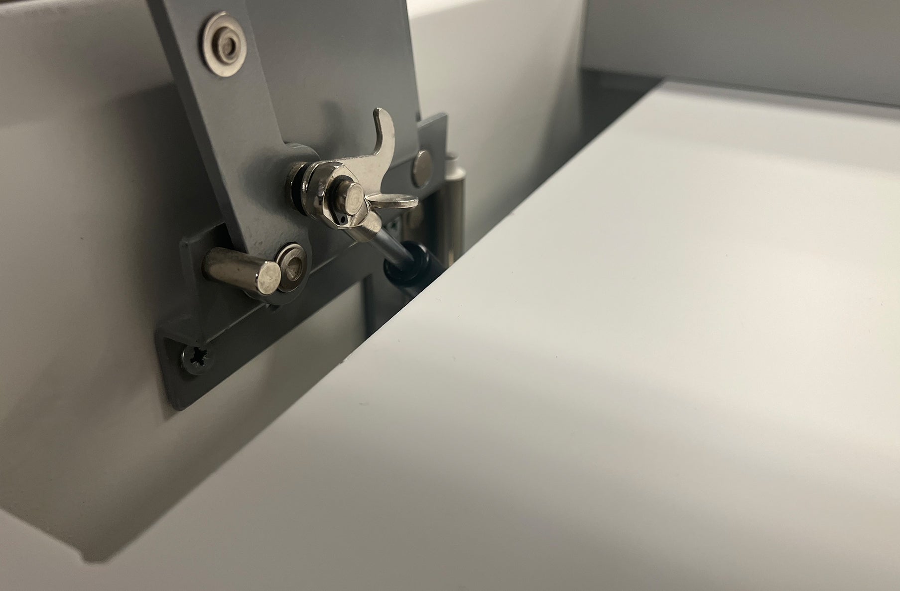 Single drawer divided into 2 Drawer compartments. Self closing mechanism.