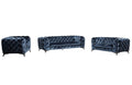 Casa Eleganza is proud to present the Knox Sofa Set. This modern interpretation of the timeless chesterfield sofa is hand sewn using Velour Fabric to enhance the detail & quality of the tufted cushions. Gun powder gray legs contrast the majestic velour which comes in a royal blue, or imperial purple.This set can be ordered in a wide array of fabrics.