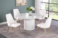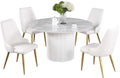 - Detail Description: Dining Set w/ Sintered Stone Top Table & Stitched Back Golden Legged Chairs