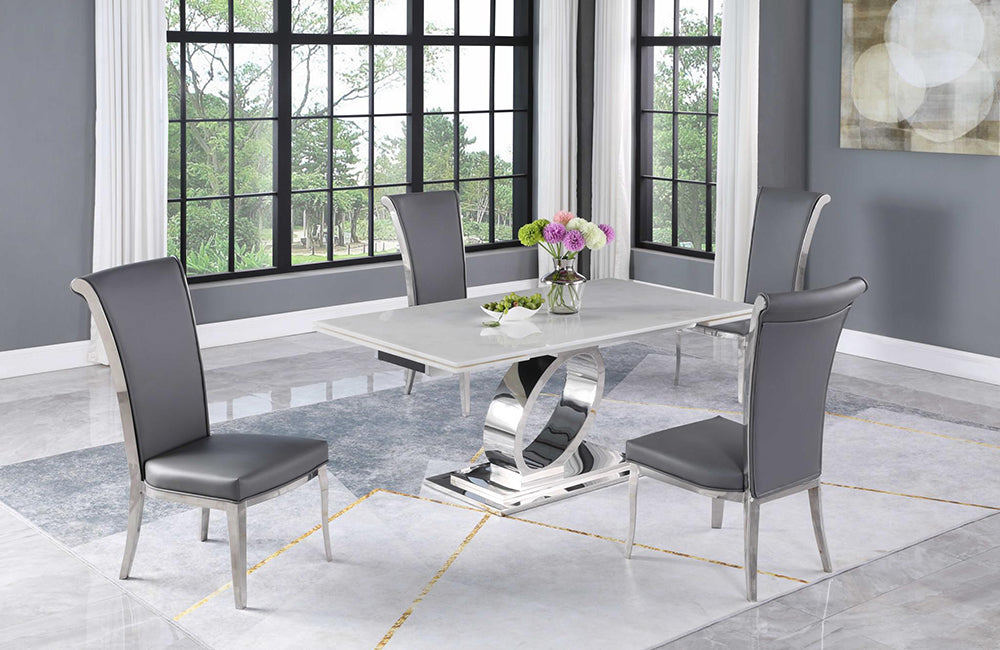 - Detail Description: Contemporary Dining Set w/ Extendable Marble Table & Roll Back Chairs
