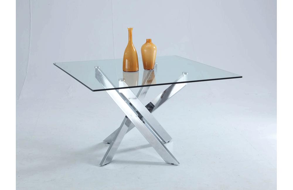 This elegant table is a great example of contemporary stylings, with a clear glass top and chrome metal Jax legs.