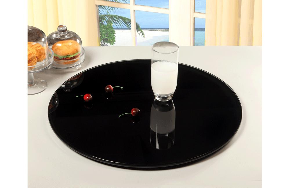 360 Degree Rotatable Tray. Round Painted Black Glass.