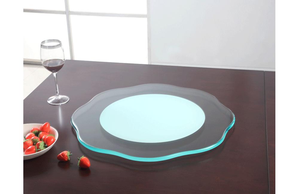 360 Rotatable Tray. Flower shaped 24" Glass Serving Tray. Center painted white.