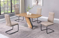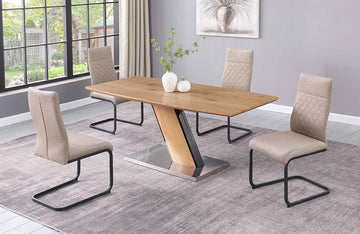 LEAH Dining Table Base Rectangular Stainless Steel Floor Plate Finish: Polished SS Standard Pack, LEAH Dining Table Middle Column 2-Tone Wooden & Steel Pedestal Finish: Ligh Oak/Black Standard Pack, LEAH Dining Table Top 32"x 55-71" Extendable Wooden Top Finish: Light Oak Standard Pack.