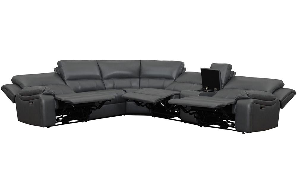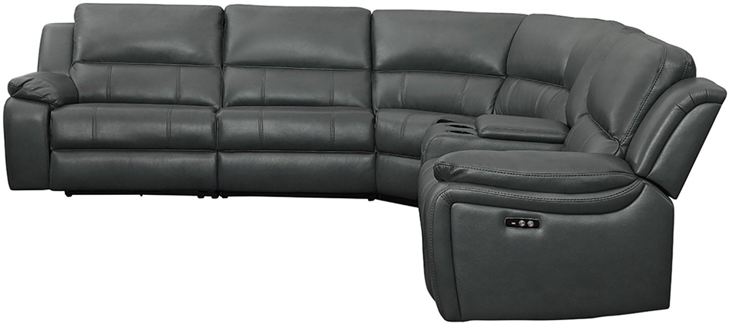 Modern convenience paired with comfort and style create the perfect seating option for your home with the Leonardo Gray Collection. Two leather gel match cover options are available: gray or dark brown. Power reclining mechanisms are engaged with the push of a button, taking you from seated to prone in one gentle motion. Further functionality comes in the form of the side-mounted USB port and cup holder console.