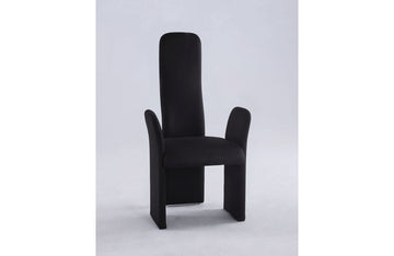 This stylishly ostentatious armchair is fully upholstered in soft black fabric. Its ultra modern profile makes it an ideal addition to your contemporary styled dining room.