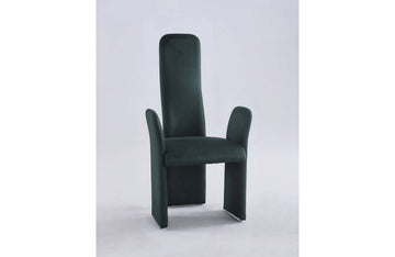 This stylishly ostentatious armchair is fully upholstered in soft green fabric. Its ultra modern profile makes it an ideal addition to your contemporary styled dining room.