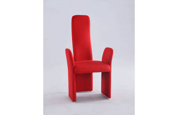 This stylishly ostentatious armchair is fully upholstered in soft red fabric. Its ultra modern profile makes it an ideal addition to your contemporary styled dining room.