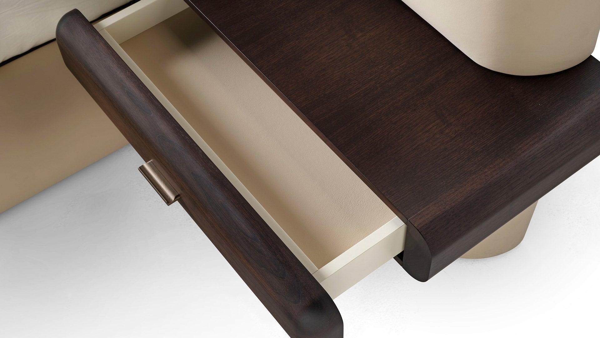 DRAWERS AND BED BASE: solid Canaletto walnut with a light or dark matte finish.
