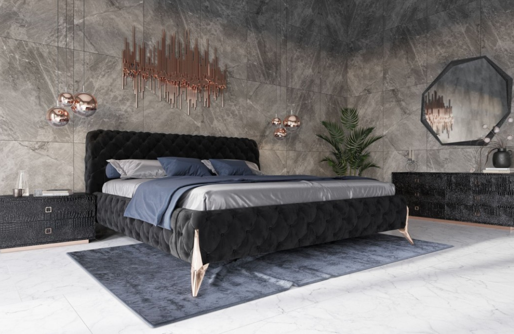 Lewisville - Modern Black Velvet & Rosegold Bed