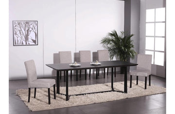Modern and simple, the Ligia 5 PC Dining Set will be great addition to your dining room. The set is made in Black Oak veneer and features tapered solid wood legs. The size of the table is great for comfortable accommodation of eight people. Optional matching side chairs are also offered to complement harmoniously your dining room or dinette. Chairs feature solid wood frame and knit fabric upholstered seat and backrest.