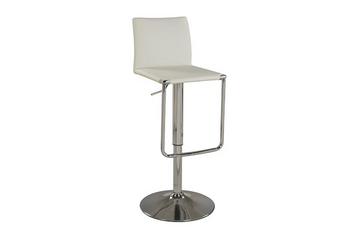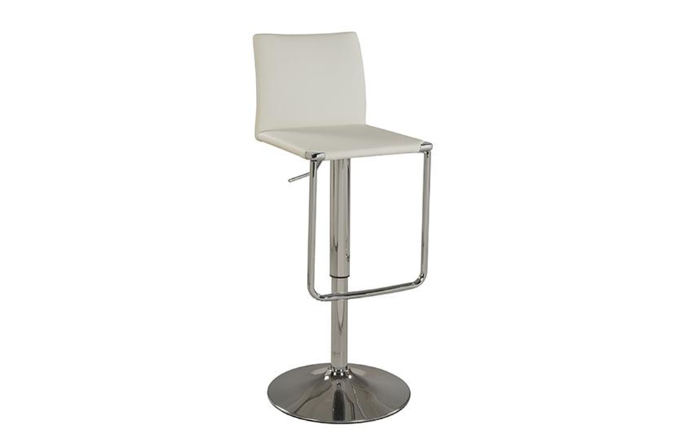 Modern pneumatic gas lift adjustable height stool. Seat height adjusts easily from 22.05" to 31.89". Cushion upholstered in durable white PU , Upholstered back rest. Footrest for extra comfort. CA fire retardant foam. Color-Finish: Chrome