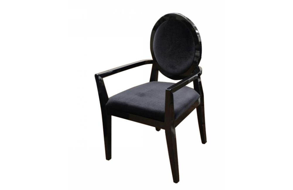Elegant microfiber padding on seat gives an incredulous appeal to this Transitional Fabric High Gloss Chair. The padded oval-back rest provides ultimate comfort. This chair with a transitional design can be used in the living room, bedroom as well as in the office. Black lacquered, the chair adds splendor to any room without being too showy.