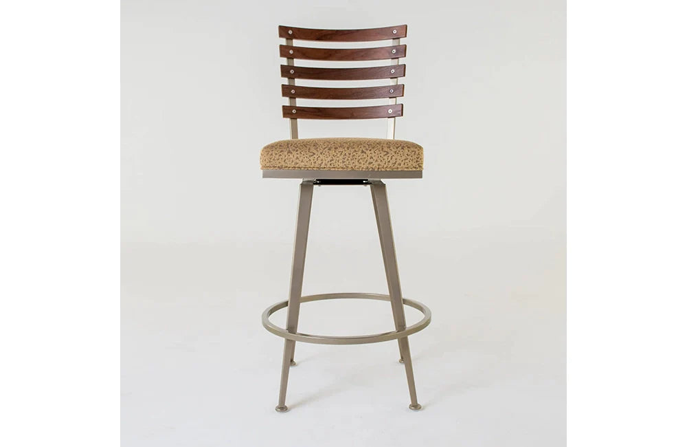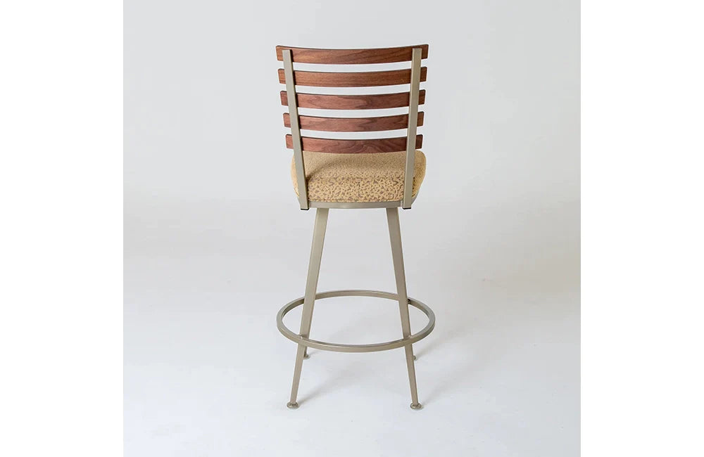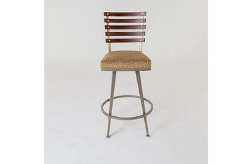 If there’s anything most distinguishing to Maddox chairs, that would be the horizontal wooden arcs of the backseat. The Maddox Barstool wears those curved backrests in a proud but reserved manner. Its metal back posts hold these wooden slats in even spaces and shape in an inward slope, much more like a taper.