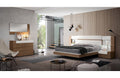 Natural WALNUT wood veneer with White high gloss lacquer. Eco Leather in white.