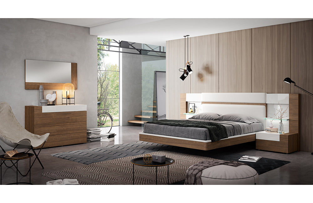 Modern headboard although manufactured with numerous materials usually difficult to combine offers a soft, elegant and cozy bed look.