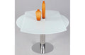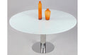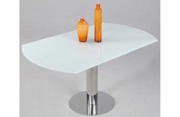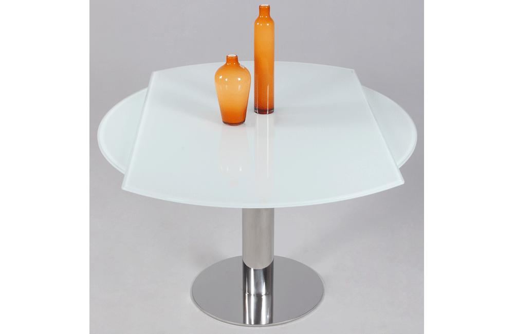 Fits 6 Side Chairs when Table is opened. Easily Assembled. Shiny Stainless Steel for Base.